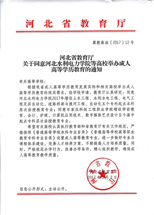 河北省教育厅下发《河北省教育厅关于同意乐投·体育等高校举办成人高等学历教育的通知》(冀教高函〔2017〕12号)同意我校2017年增设土木工程、水利水电工程、电气工程及其自动化、道路桥梁与渡河工程、自动化...