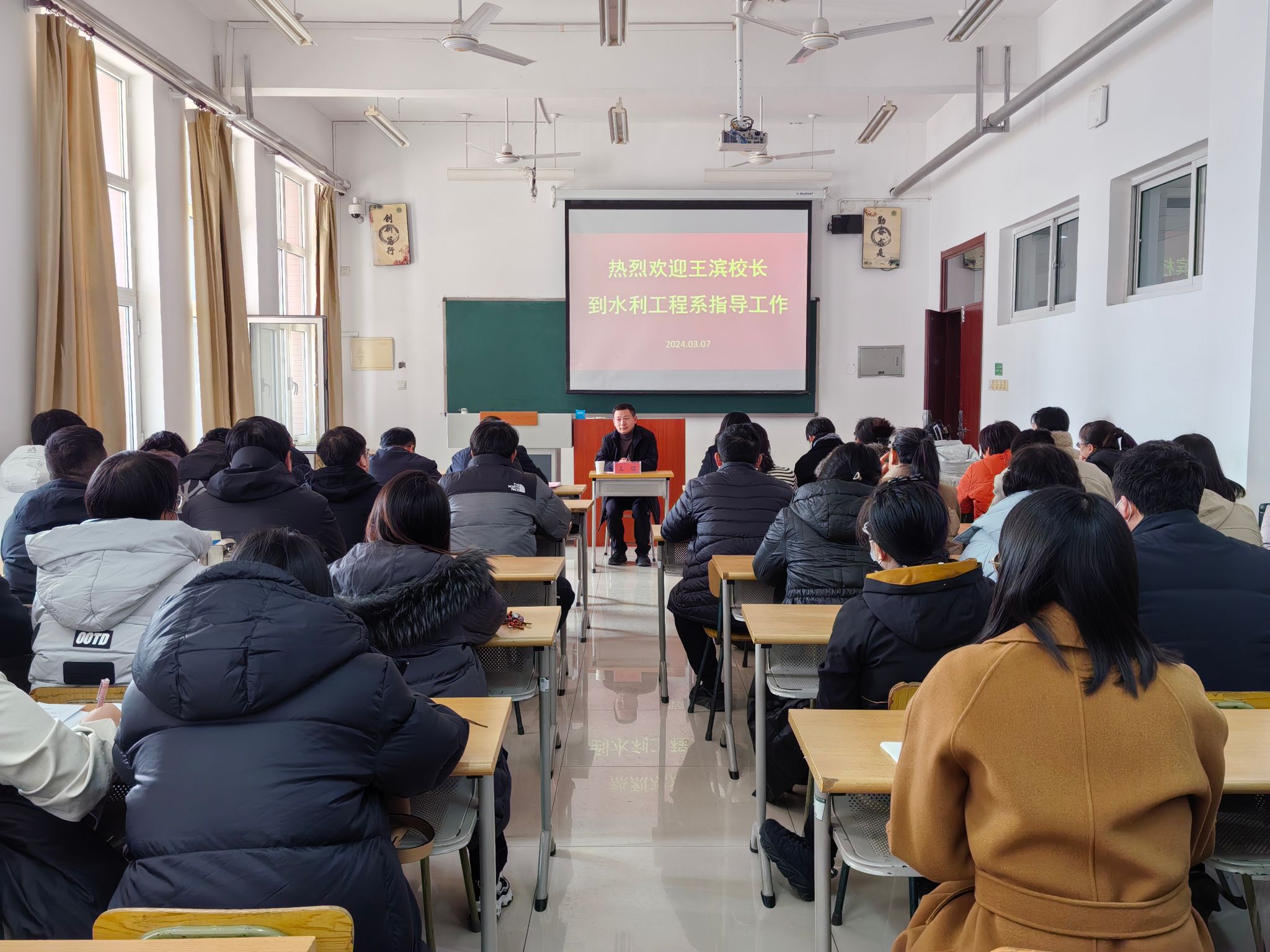 3月7日下午,党委副书记、校长王滨赴水利工程系调研指导工作。水利工程系全体教师参加会议。本次会议由水利工程系主任单长河主持。在听取了水利工程系基本情况、基层党建、支部建设和学生管理等工作后,王滨指出,水利工程系要继续聚焦水利学科建设、专业发展、本科教学合格评估等重点工作,保持干劲、统筹资源、系统谋划、全面推进,要高度重视高水平学科团队的培育,高度注重跨学科合作,当好学校“高质量、有特色”发展的排头兵,...