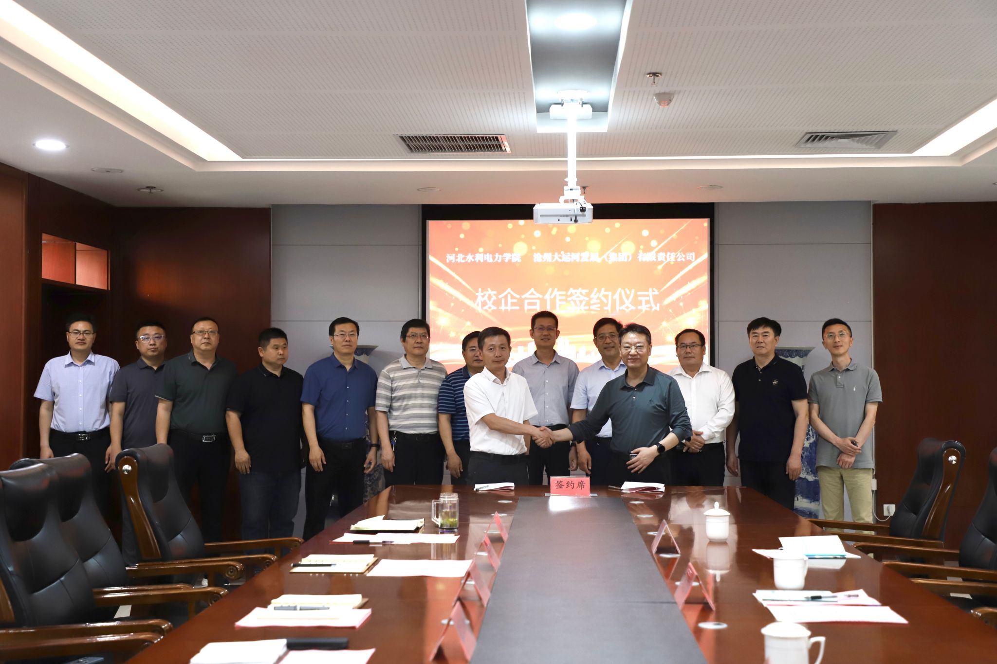 5月28日,我校与沧州大运河发展(集团)有限责任公司在弘文守正楼1102会议室举行了校企合作签约仪式。沧州大运河集团党委书记、董事长赵重阳,副总经理张阁,办公室主任田培林;学校党委书记张效松,党委副书记、校长王滨,副校长崔立功,副校长王建明出席了签约仪式。签约仪式由副校长王建明主持。张效松对赵重阳一行表示热烈欢迎,他从建校历史、办学历程、人才培养、专业建设、师资情况、科研工作、招生就业等方面介绍了学校基本情况,...