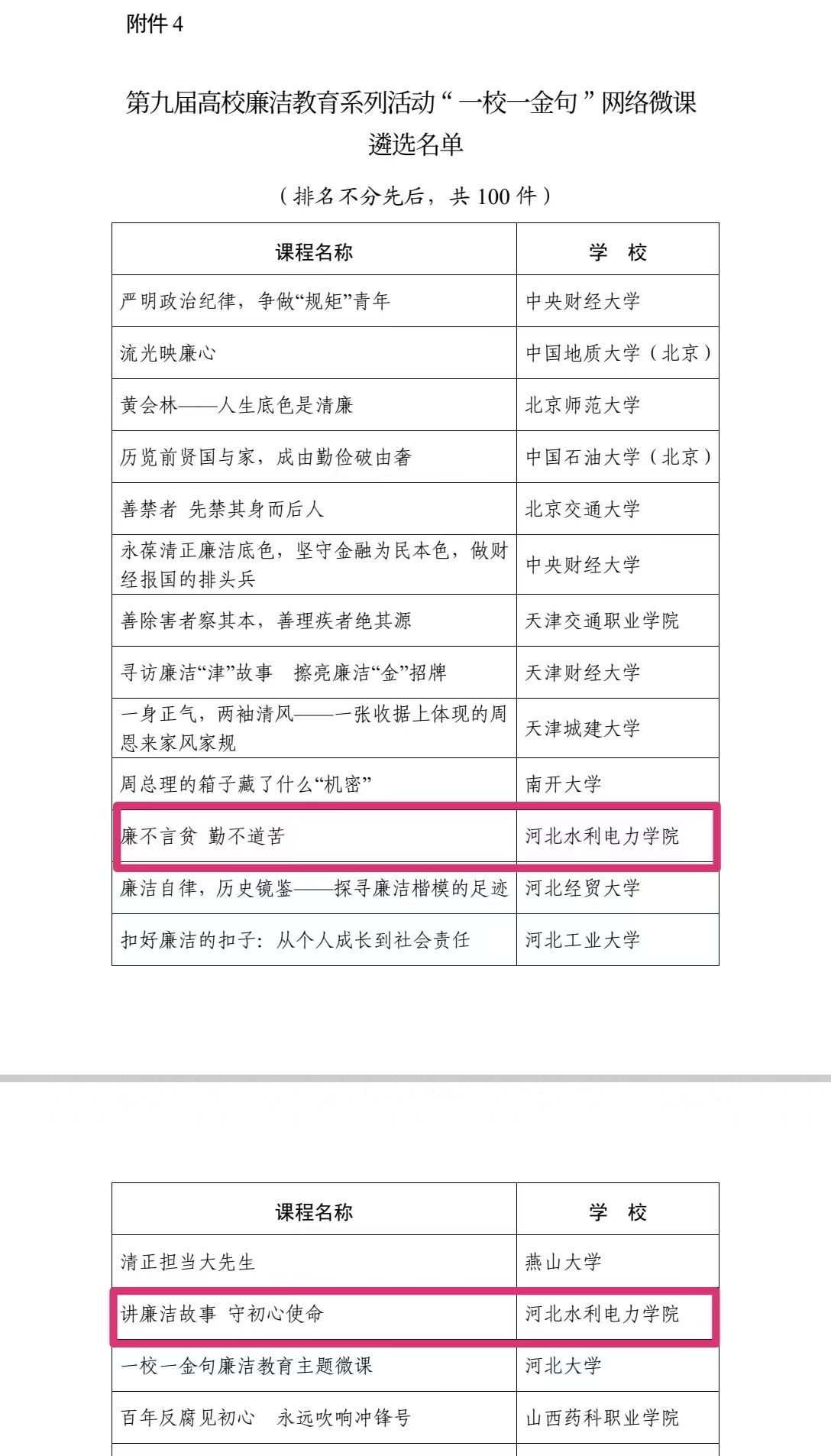 日前,根据教育部思想政治工作司发布的第九届高校廉洁教育系列活动优秀作品遴选名单,我校纪委办公室联合党委宣传部、马克思主义学院、电力工程系拍摄的《廉不言贫 勤不道苦》和《讲廉洁故事 守初心使命》两部廉洁教育微党课均入选“一校一金句”网络微课遴选名单。根据河北省委教育工委公布的2024年高校党建主题作品评选结果(河北省),上述两部廉洁教育微党课分别在活动中荣获二等奖,廉洁案例《“一主线三结合”校园廉洁文化建设模式》...