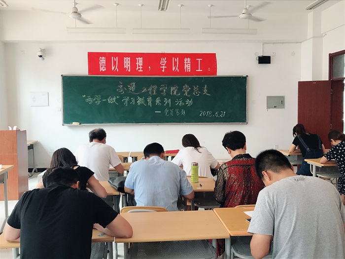 为深入学习习近平新时代中国特色社会主义思想和党的十九大精神,学习习近平系列重要讲话精神,推进“两学一做”学习教育常态化制度化,交通工程学院党总支组织开展‘两学一做’学习教育知识答题活动。 该活动自3月22...