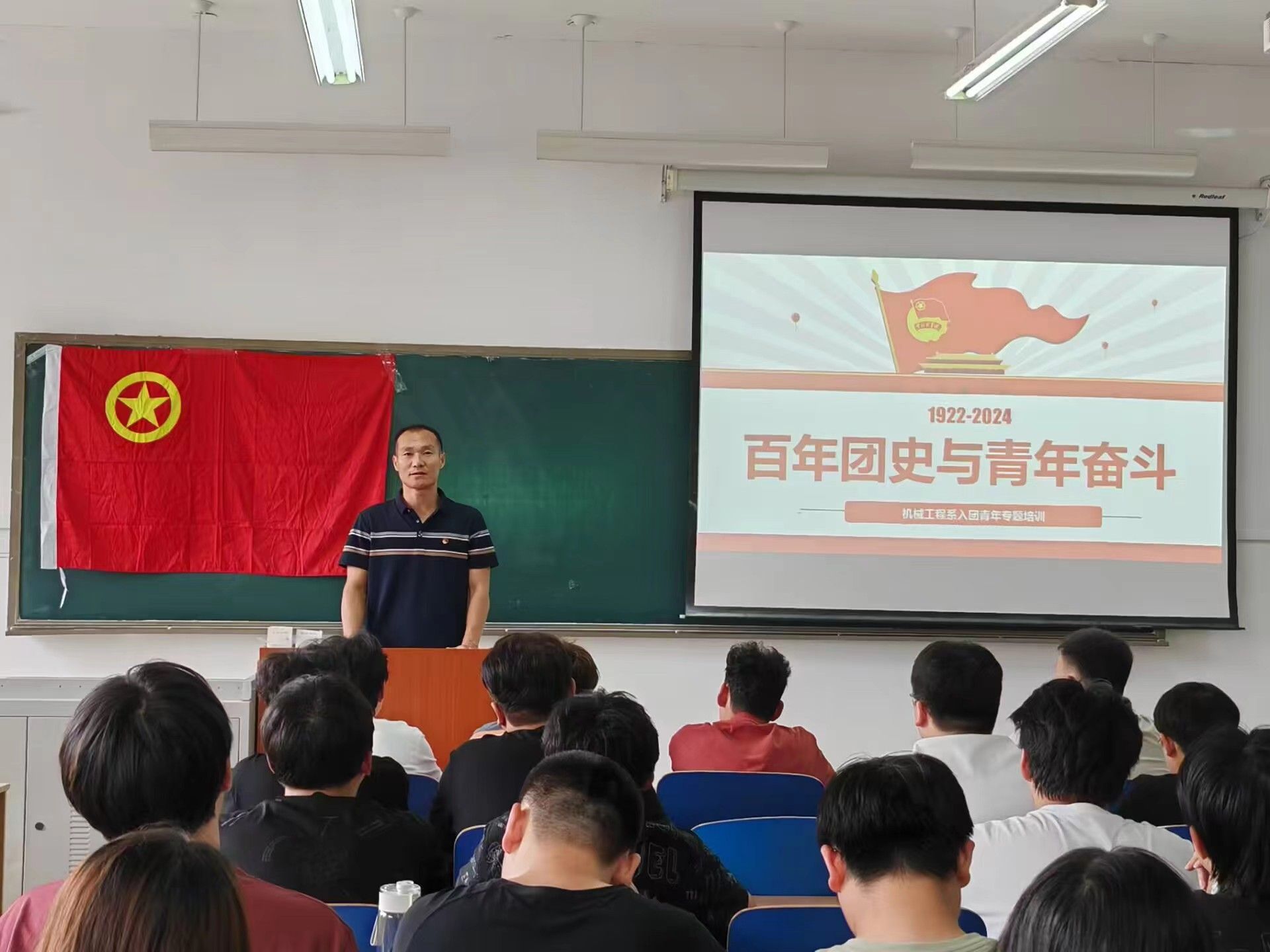 为深入贯彻落实习近平新时代中国特色社会主义思想和党的二十大精神,深入学习领会习近平总书记关于青年工作的重要论述,引导青年学生端正入团动机,提高发展团员工作质量,近期,机械工程系组织开展了2024年入团积极分子培训活动,100余名入团积极分子参加培训。团课上,机械工程系党总支副书记杨学智以“百年团史与青年奋斗”为主题,以青年团的三个主要发展阶段为切入点,从1920年8月社会主义青年团在上海的建立,到1925年1月召开的中国社会主义青年团第三次全国代表大会上“...