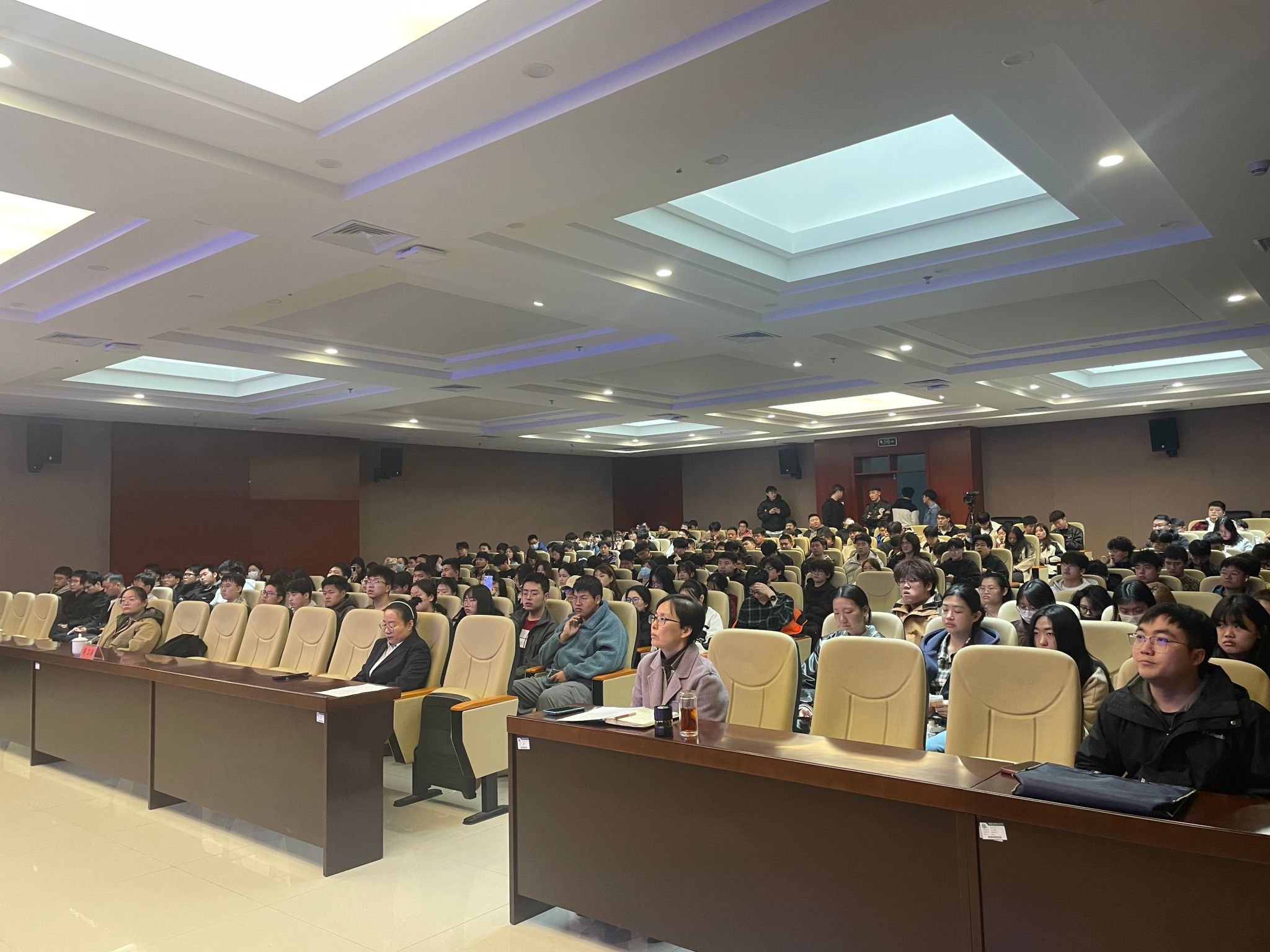 在报告会环节,河北省地矿局第四水文工程地质大队高级工程师杨熙以“知水惜水,真爱生命之源”为主题,从水资源的本质到水资源对人类的影响展开,强调水资源是极其重要的基础性自然资源,是维系经济社会发展和国家生态安全的重要战略资源。报告过程中,杨熙高工与学生进行了互问互答,现场氛围非常活跃。最后她以“士不可以不弘毅,任重而道远”为结尾,鼓励学生努力学习专业文化知识,知水爱水节水!