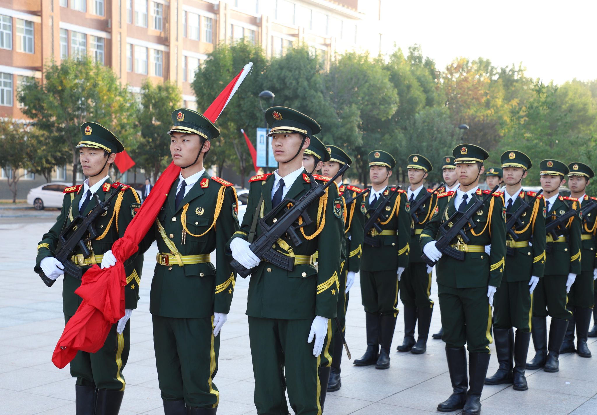 秋风猎猎展红旗,晨曦煌煌贺华诞。为庆祝新中国成立75周年,进一步弘扬爱国主义精神,增强师生爱国意识和民族自豪感,10月1日上午,我校隆重举行庆祝新中国成立75周年升旗仪式。党委书记张效松、校长王滨、党委副书记崔立功、副校长于振海、副校长杨凯及师生代表共计1000余人参加了升旗仪式。升旗仪式由校长王滨主持。