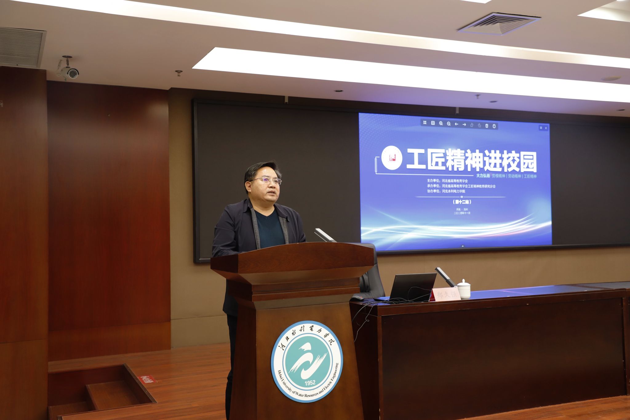 为大力弘扬工匠精神,贯彻落实习近平总书记关于工匠精神的系列重要论述和指示精神,根据河北省高等教育学会工匠精神教育研究分会的活动安排,11月21日,我校在弘文守正楼九楼报告厅举办了“工匠精神进校园”主题宣讲会。本次宣讲会邀请到齐名老师和郑久强老师两位专家做主题宣讲,宣讲会由副校长王建明主持。
