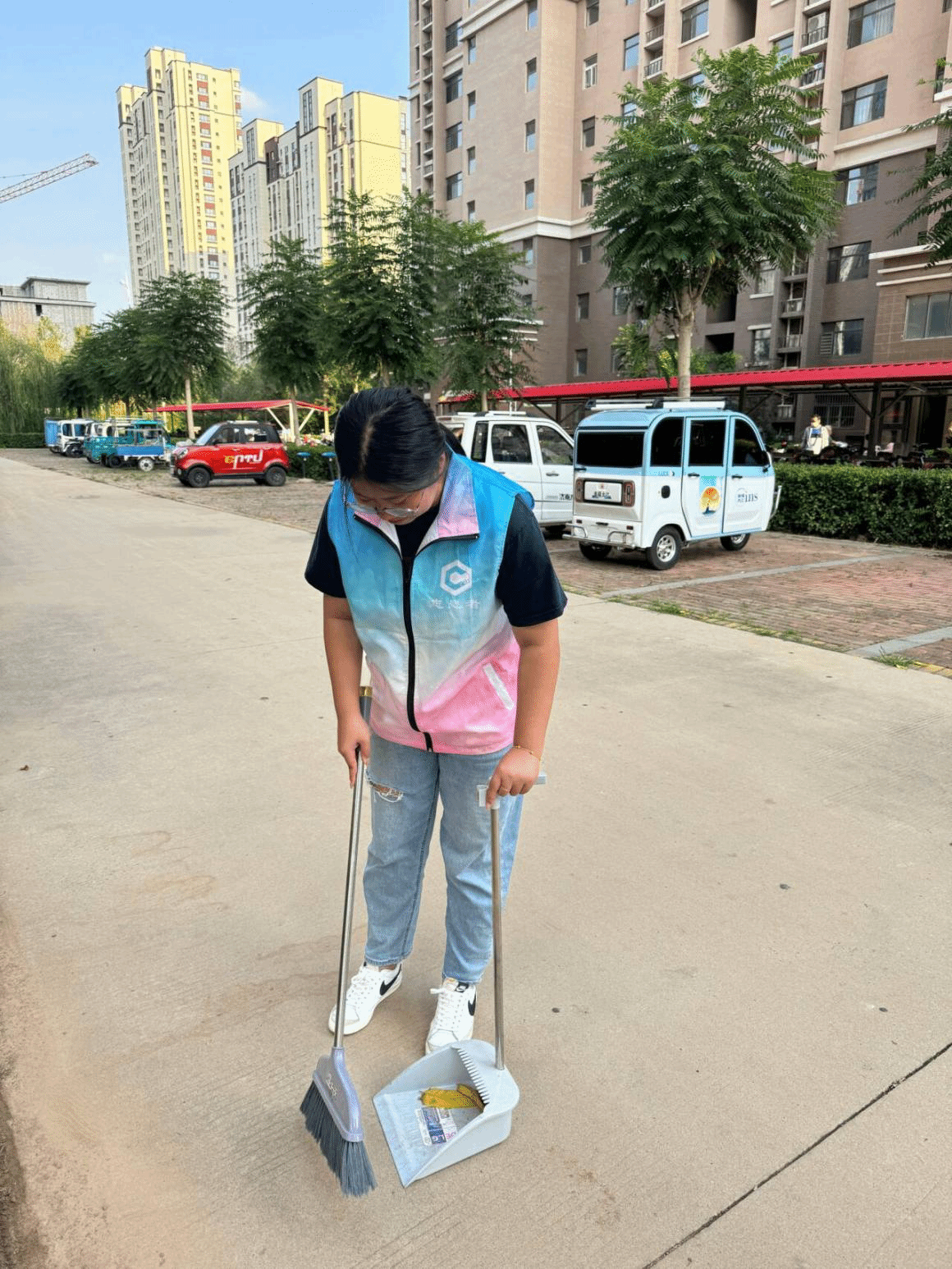 随着夕阳的余晖洒满社区,全体积极分子身着蓝色志愿服,准时集合于凤凰城A区门口。在简短的动员大会后,大家按照事先规划的分组,迅速投入到志愿服务活动中。本次志愿服务的主要内容包括清扫社区公共区域的垃圾、规范摆放乱停乱放的自行车等。