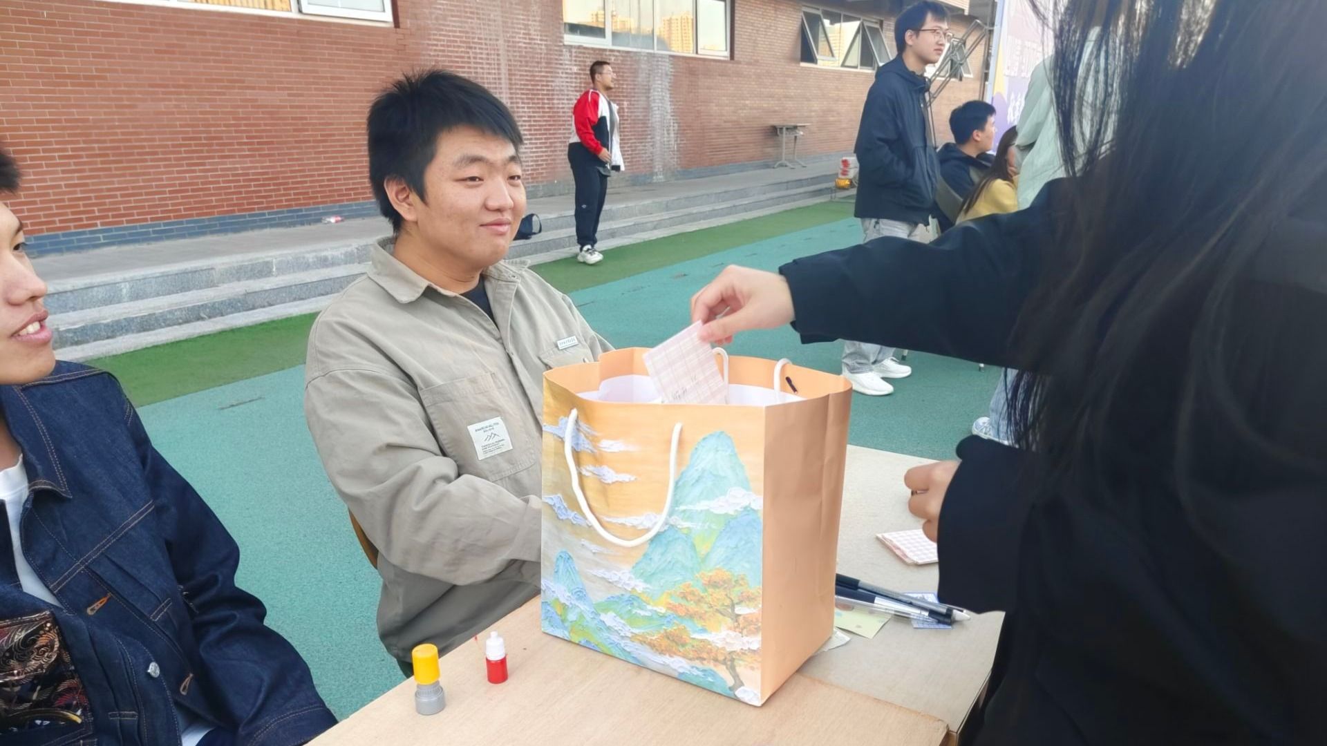 学生排队领入场券